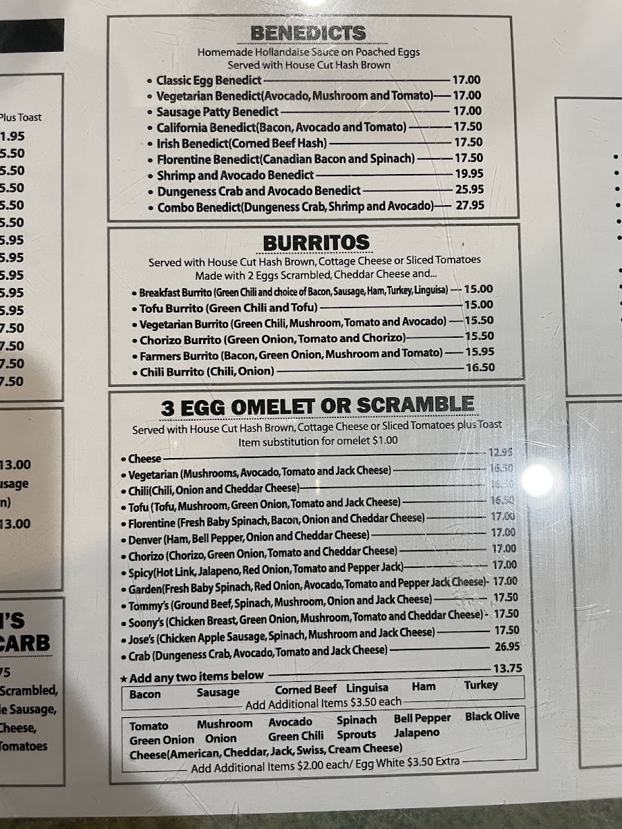 Start your meal with enticing starters like crispy Chicken Nuggets or Deep Fried Calamari. Move on to the melts, showcasing selections like the savory Turkey Melt with Jack Cheese, or the classic Grilled Cheese, both perfect for a casual lunch. Breakfast lovers will revel in the 2 Eggs Breakfast options, especially the indulgent Jose's Omelette, beloved for its rich flavor profile.